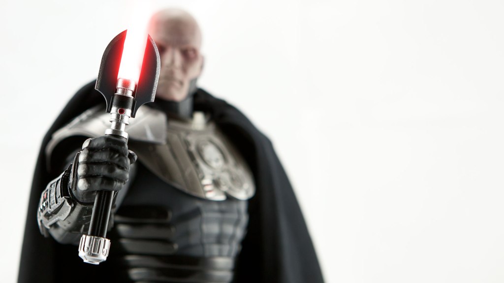 Sith Lord Darth Malgus debuted in the Star Wars: The Old Republic video game set 3,600 years before the events of Star Wars Episode IV: A New Hope. Often relying on rage to fuel his Dark Side connection, Darth Malgus’ lightsaber hilt featured blade-like protrusions that looked menacing enough without even igniting the blade!