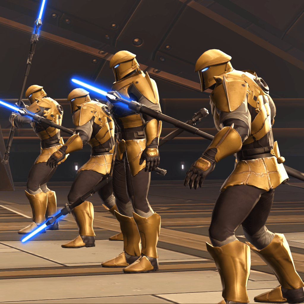 Interestingly, lightsaber pikes – essentially a lightsaber-tipped spear or halberd that was either single- or double-bladed – were used by both Jedi and Sith. It’s more popularly known to be the weapon of choice for Jedi Temple Guards during the Clone Wars, and has also been seen to be used by Knights of Zakuul, the enforcers of justice in the Eternal Empire.