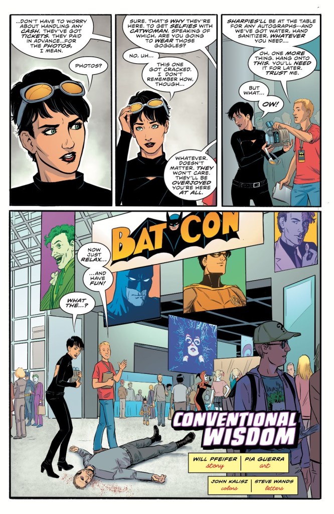 In “Conventional Wisdom,” Selina Kyle finds herself at a comic convention where everyone seems to know her – including her secret identity – as well as her pop culture history with plenty of clever references to comics and Catwoman’s long history in media IRL (see, told you it was meta!). With strange occurrences along the way, Catwoman seeks to unravel the mystery that leads to a fun, twist ending; all of which makes for a great read!